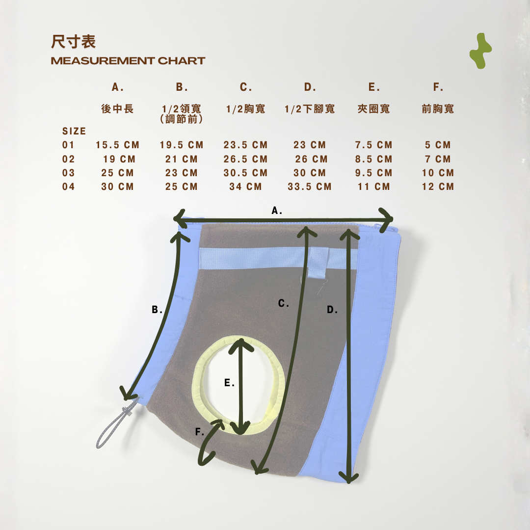 ⍛ 3/4 長度剪裁,適合不同品種毛孩穿著