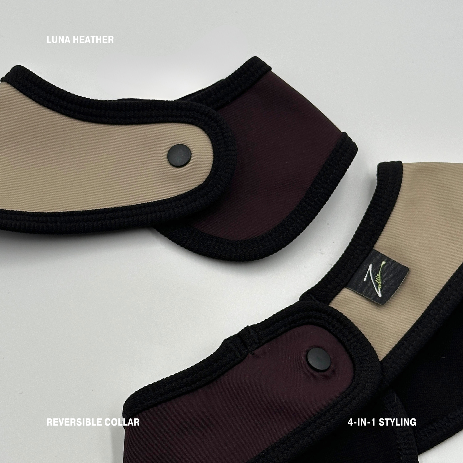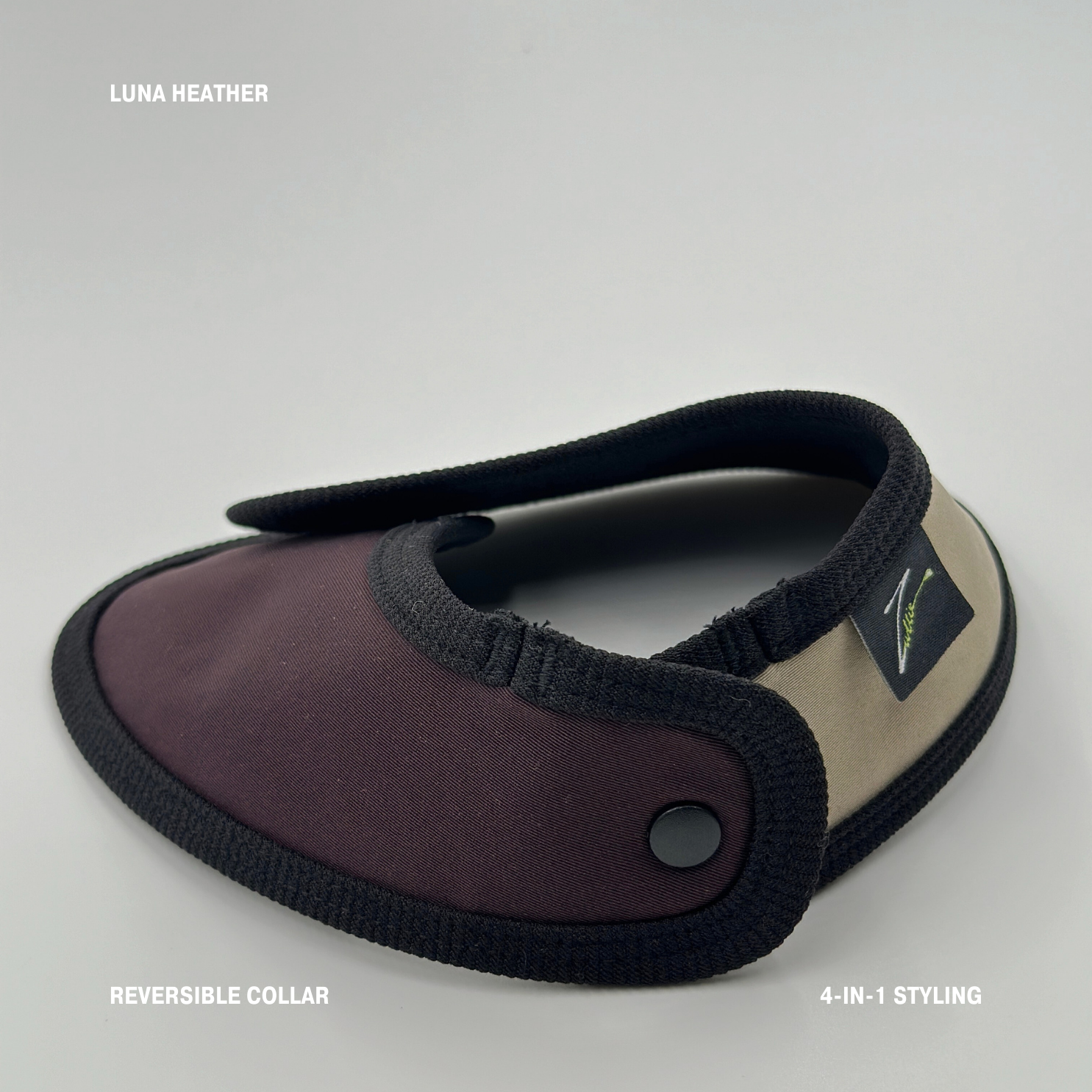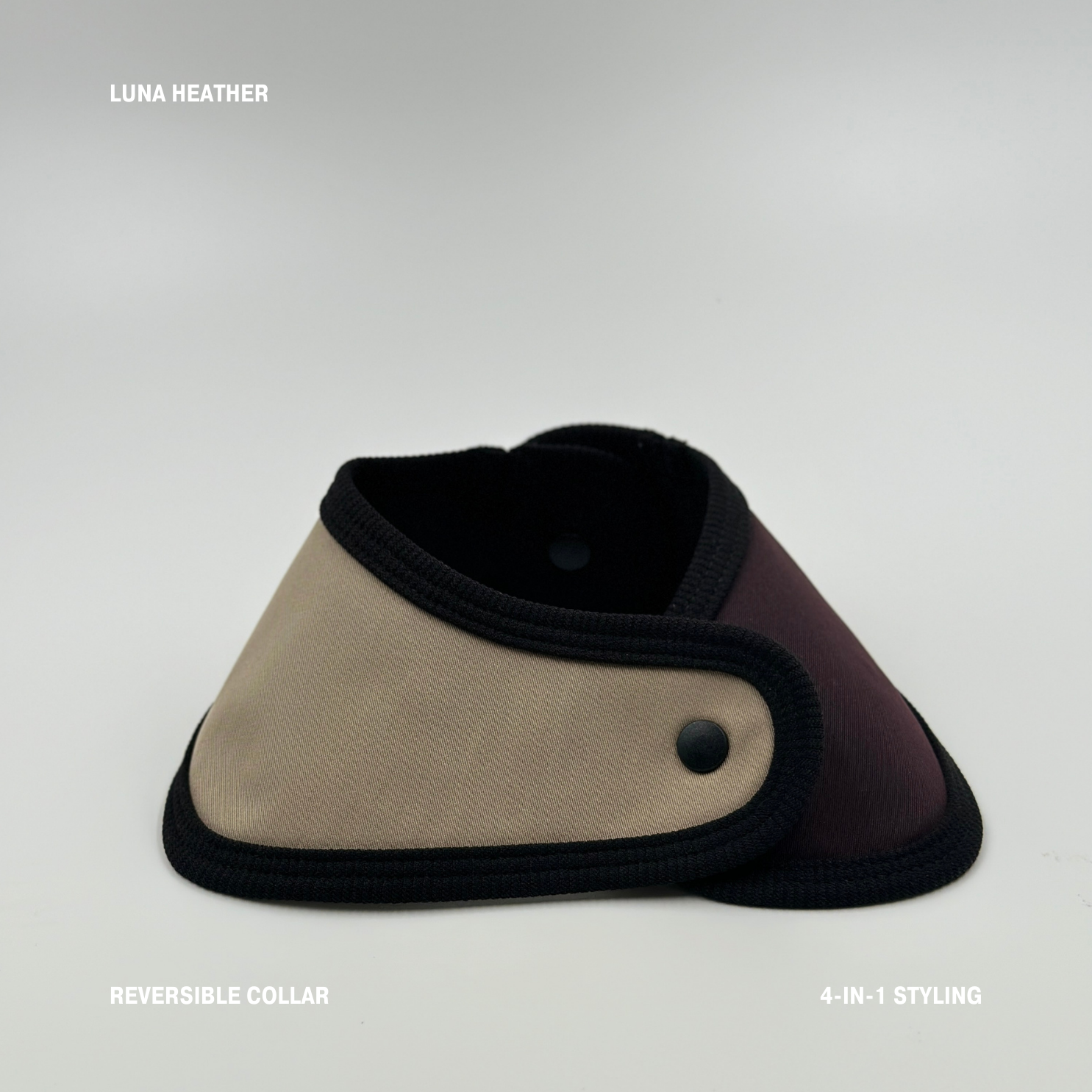 Luna Heather 是一款方便穿脫、顏色/款式可自由搭配,以及多種穿搭方式的寵物頸巾。頸巾左右片設計皆有啪鈕可正反面搭配,一個頸巾就可以搭配出四種不同的顏色組合,非常方便。