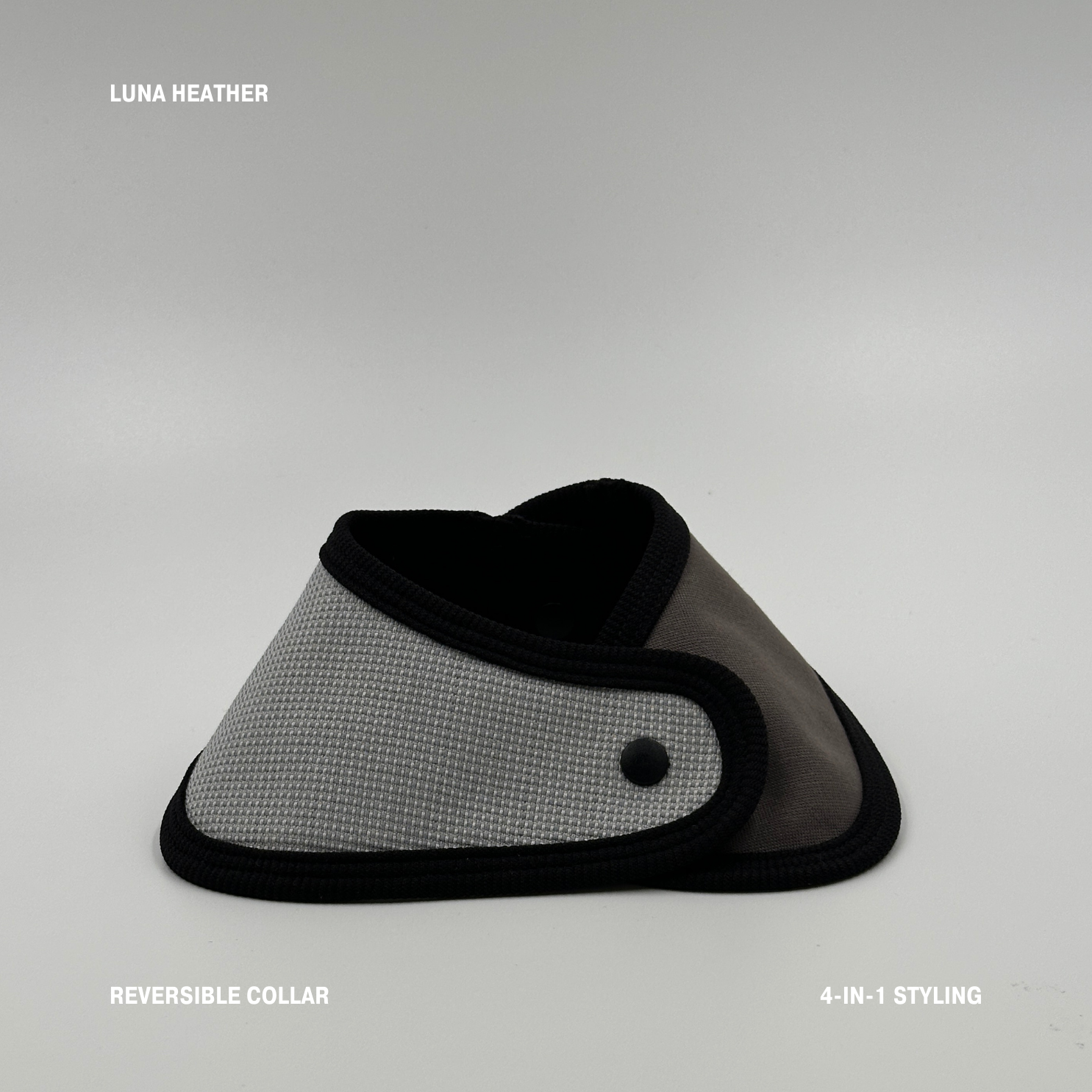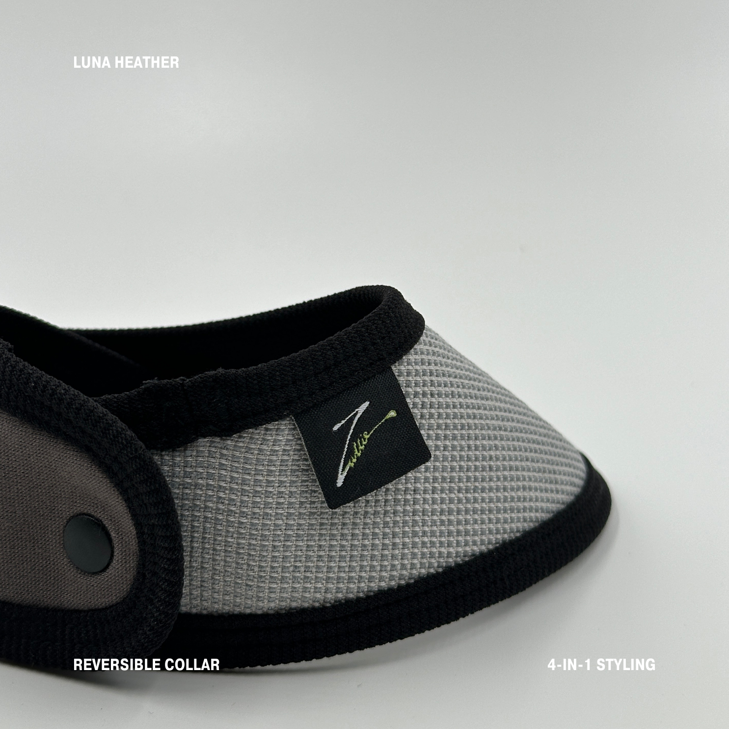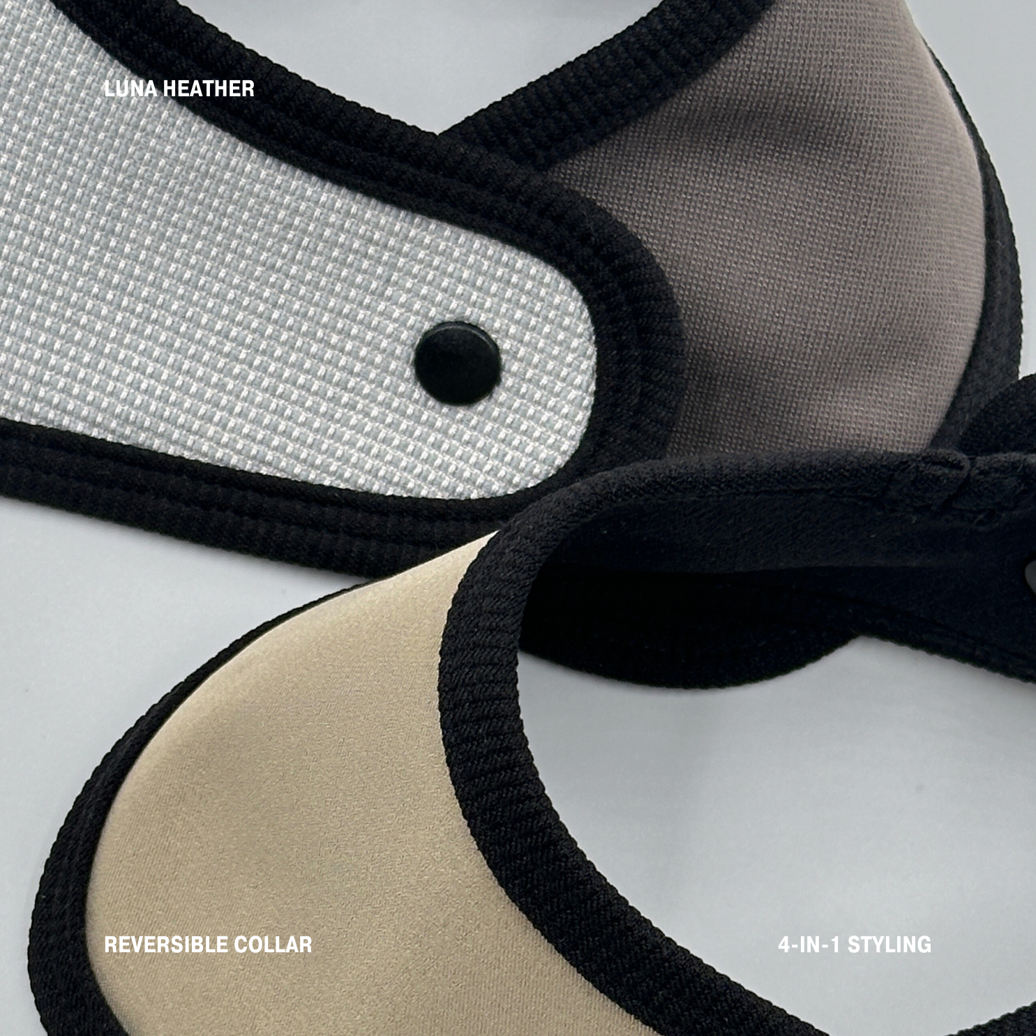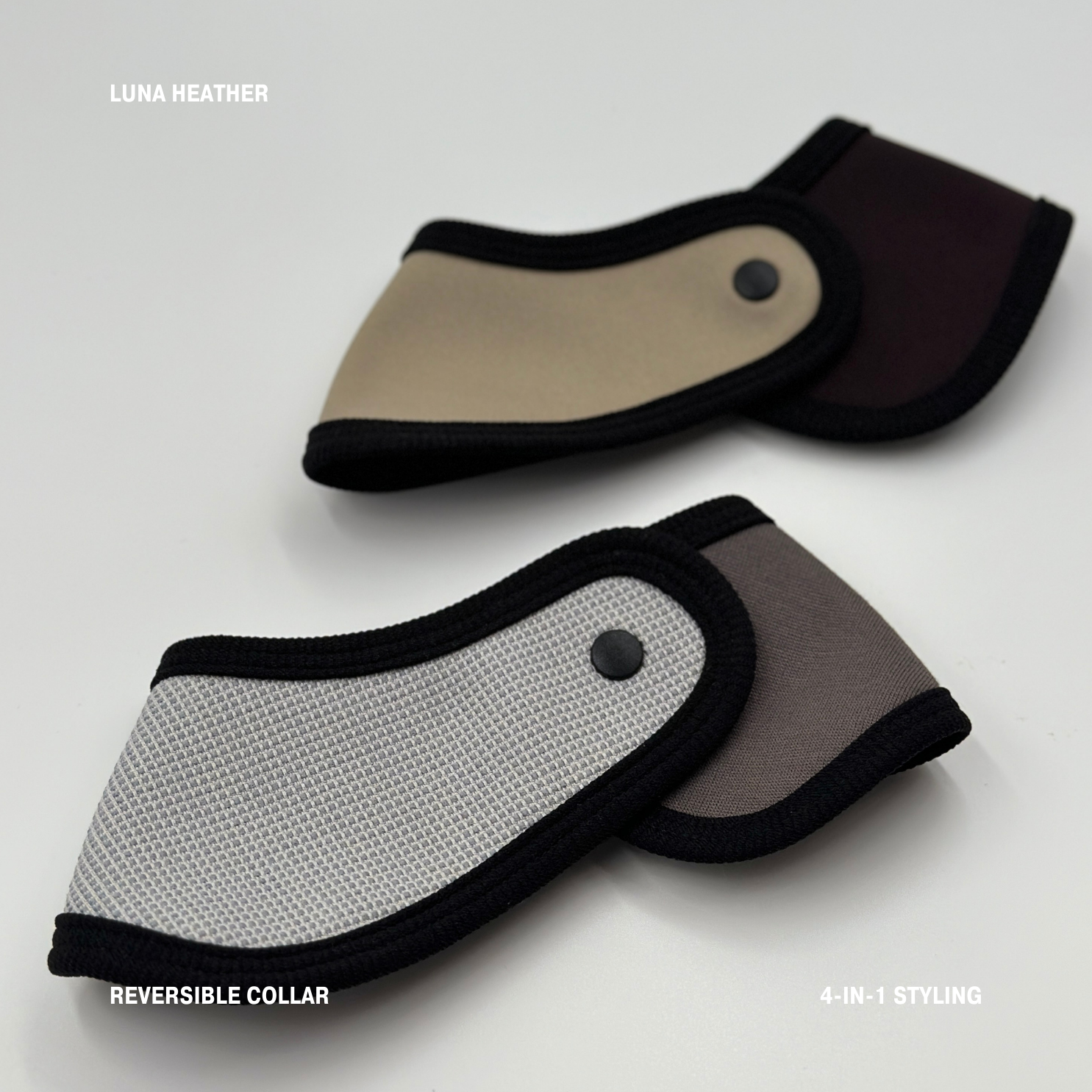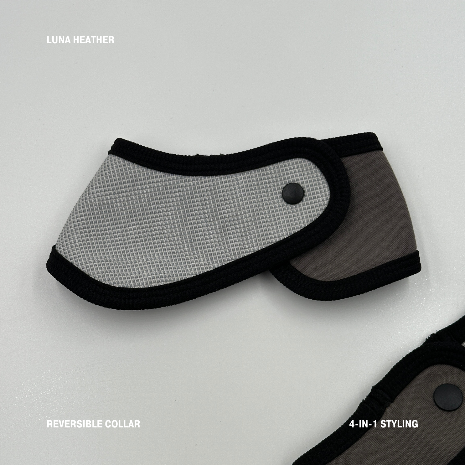 Luna Heather 是一款方便穿脫、顏色/款式可自由搭配,以及多種穿搭方式的寵物頸巾。頸巾左右片設計皆有啪鈕可正反面搭配,一個頸巾就可以搭配出四種不同的顏色組合,非常方便。
