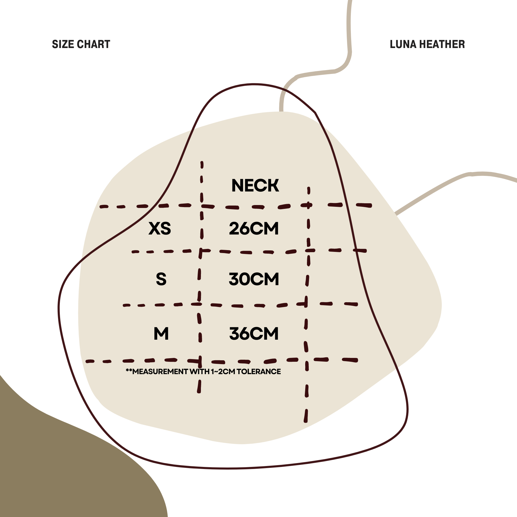 Please refer to size chart (+/-1~2cm tolerance for all measurements)
